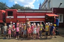 После обеда ребята посетили пожарную часть №11. Ребятам показали караульное помещение, диспетчерскую и учебные классы. Было рассказано об истории пожарной охраны, о нелёгких буднях пожарных и инспекторов. Во время экскурсии по пожарной части ребятам не только продемонстрировали предметы боевой одежды, но так же они смогли примерить на себя пожарные костюмы. Самое зрелищное и интересное ребят ждало в завершении экскурсии. На фасаде здания школьников ждала пожарная техника. Ребята смогли посидеть в кабине пожарного автомобиля и на мгновение почувствовать себя настоящим спасателем.