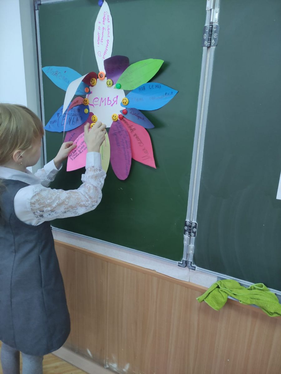 В 3в классе прошло мероприятие, посвящённое Году семьи. Ребята рассказывали о своих семьях, где упомянули, что семья - это тепло и забота о каждом. Семья – это тепло домашнего очага, взаимоподдержка, помощь, крепость и опора.Учащиеся высказывались, как прекрасно иметь семью, в которой уважают мнение всех членов семьи, прислушиваются к нему, где всегда царит атмосфера любви, доброты и понимания. Где готовы прийти на помощь в самую трудную минуту. Где царит гармония. В завершение мероприятия был создан цветок, центром которого стала семья, а лепестки- качества, традиции и обычаи, которые есть в семье.
