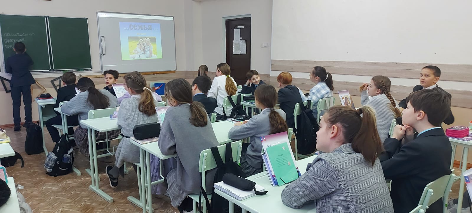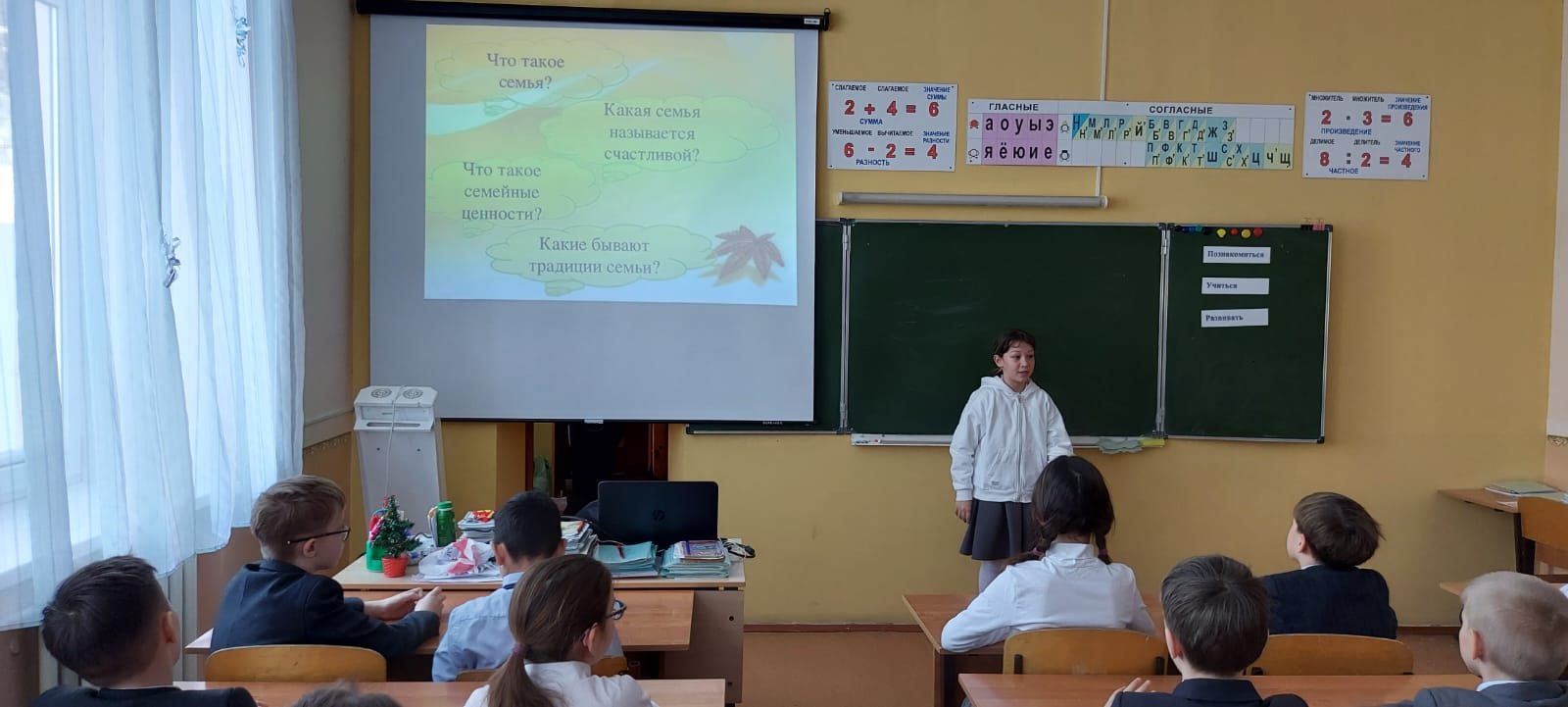 В 4Б классе прошёл классный час "Семья". Цель классного часа состояла в раскрытии таких понятий как «семья», «счастливая семья», «семейные ценности», воспитание уважительного отношения к родным и близким.