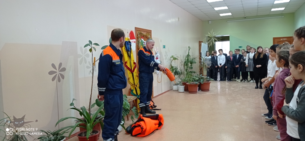 Отряд спасателей МЧС ЗПСО#7 Гизатуллин Р. Ф., Александров А. Г. и Кулагин А. К. выступили перед учащимися 3-4-х классов второго здания. В ходе беседы ребята уяснили для себя несколько основных правил безопасности на льду: неокрепший лед опасен, нельзя проверять прочность льда ударом ноги, ни в коем случае нельзя выходить на лёд в темное время суток и при плохой видимости. Ребята с интересом слушали о том, что толщину льда можно узнать по цвету льда, что проведение игр на льду опасно, а также о том, что при низких температурах шансы на спасение при ЧП на воде становятся значительно меньше. Также школьникам напомнили телефоны экстренных служб при возникновении чрезвычайного происшествия.