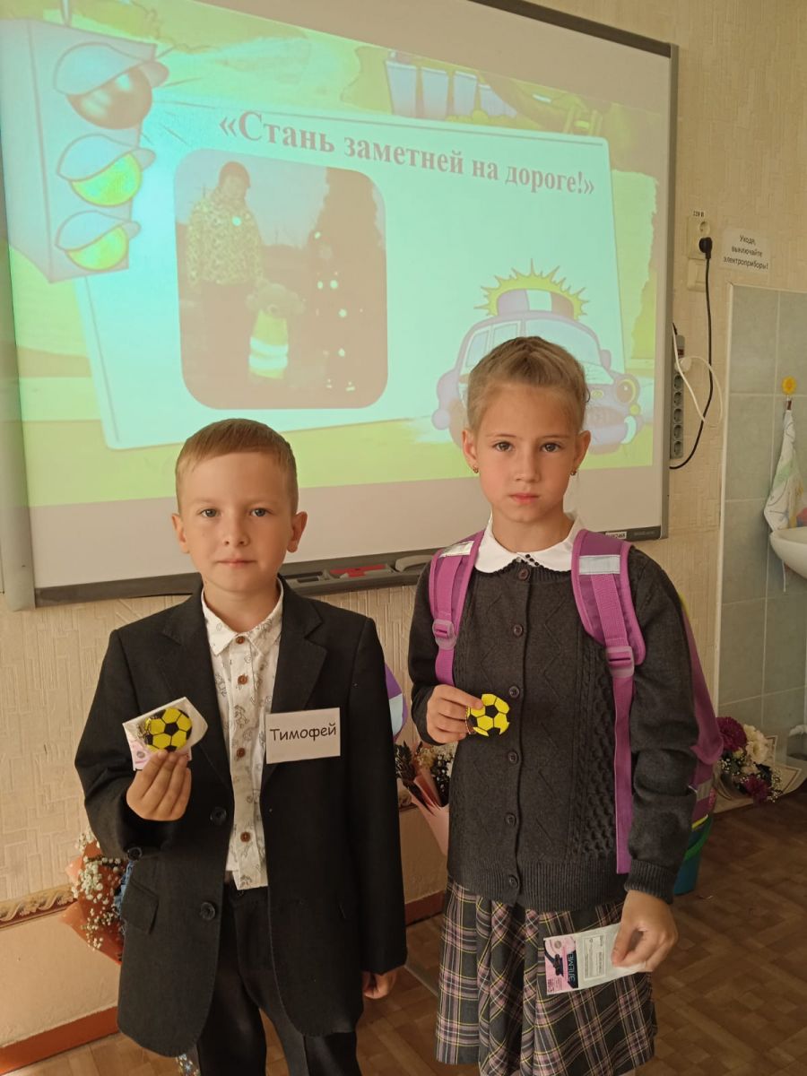 4 сентября в рамках акции "Внимание, дети!" в 1а классе состоялась беседа по правилам дорожного движения на тему "Стань заметней на дороге! " Дети узнали, что такое фликеры (светоотражающие элементы). Выяснили, что они предназначены для увеличения видимости пешеходов в темноте время суток. Их нужно носить на одежде, на рюкзаке, сумке, иметь на самокате, велосипеде. Это реальный способ уберечь пешеходов от травмы на неосвещенной дороге. Дети получили необходимый фликер в подарок.