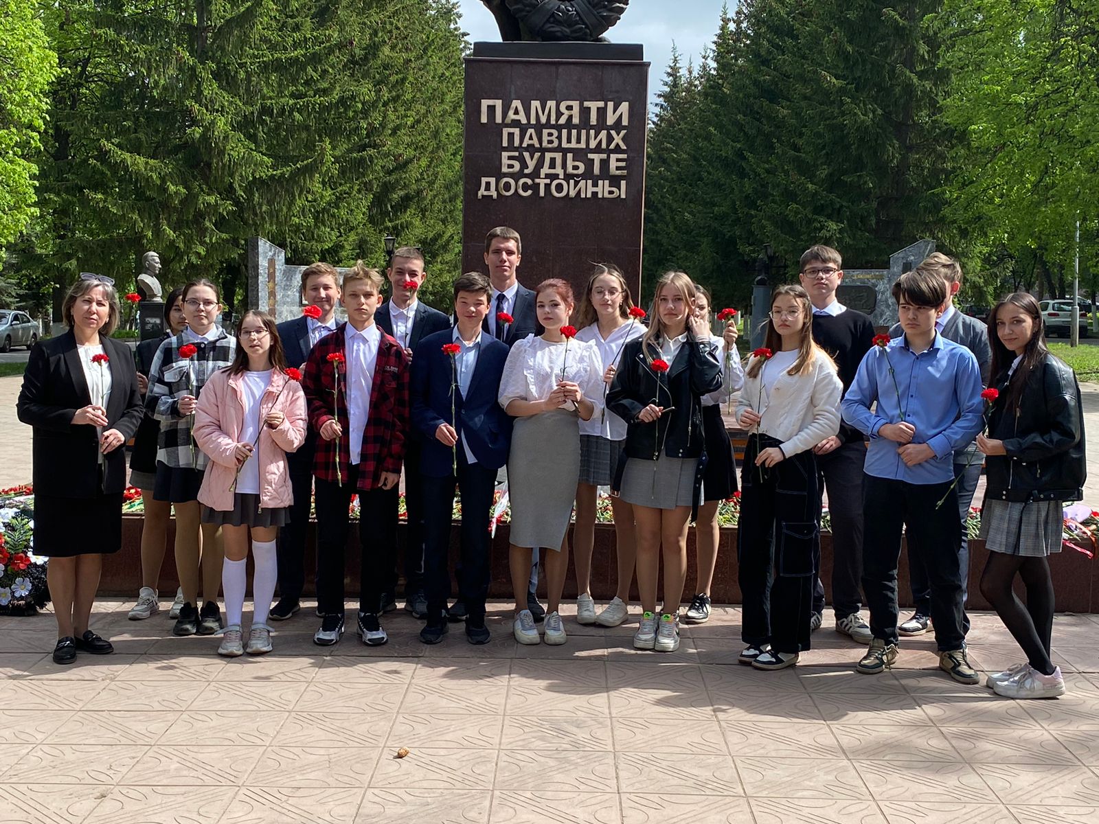 В преддверии празднования Дня Победы учащиеся школы посетили мемориал «Вечный огонь», отдав дань уважения всем солдатам, не вернувшимся с войны, всем кто погиб в боях и не дожил до сегодняшнего дня. Ребята возложили живые цветы к Вечному огню и поклонились солдатам, отдавшим жизнь за мирное небо над нашей головой.