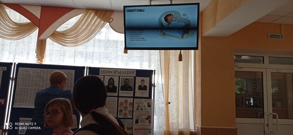 В рамках Единой недели иммунизации в период со 2 по 6 мая в фойе школы была организована трансляция видеоролика "Осторожно, Корь".