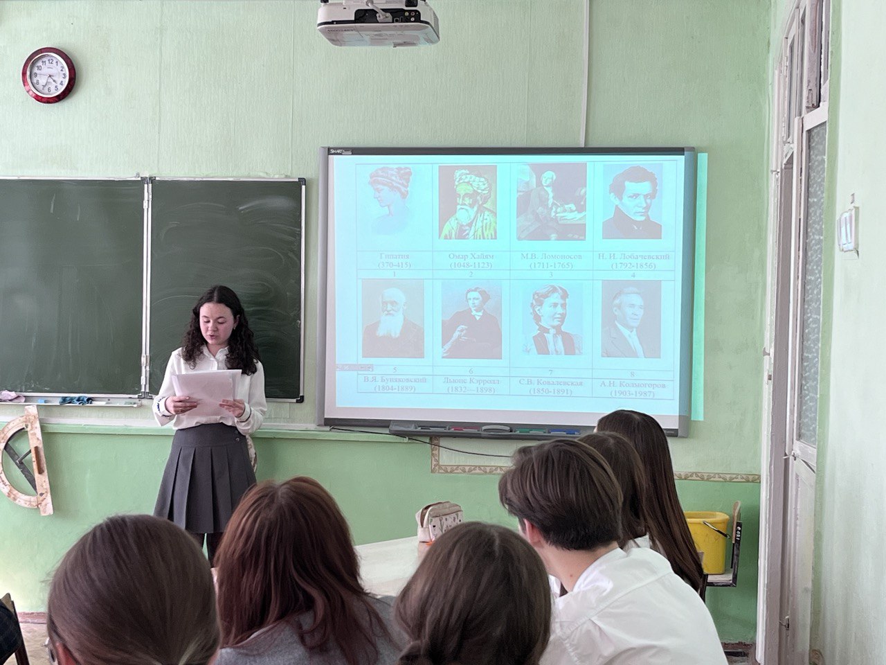 12 апреля в рамках недели математики прошло внеклассное мероприятие в 9 «б» классе «Математика в литературных произведениях». Мероприятие подготовила и провела ученица 9 «б» класса Хисматулина Алина. Ученики читали стихи великих математиков и решали задачи из литературных произведений