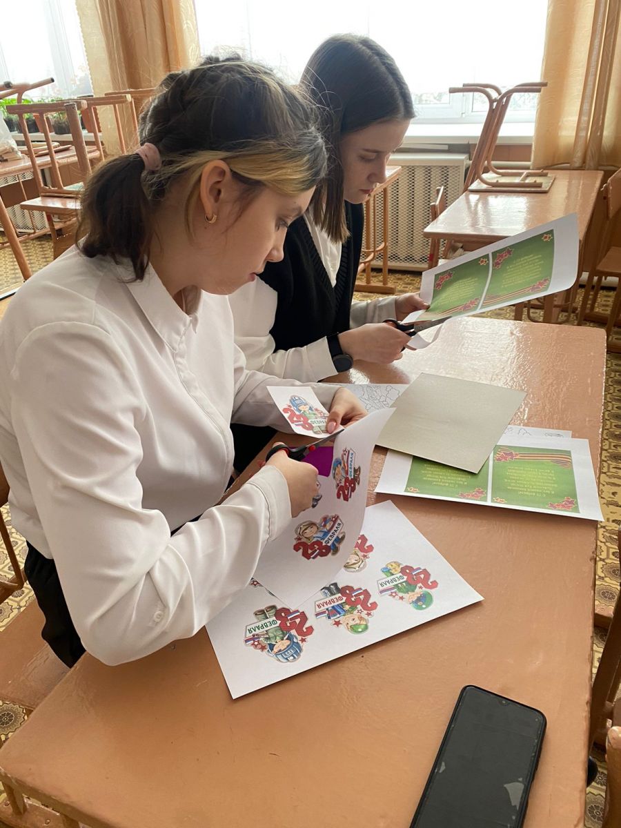 ✅ Активисты школьного отряда «Форпост» написали письма и сделали праздничные открытки солдатам СВО в честь празднования дня защитника отечества.