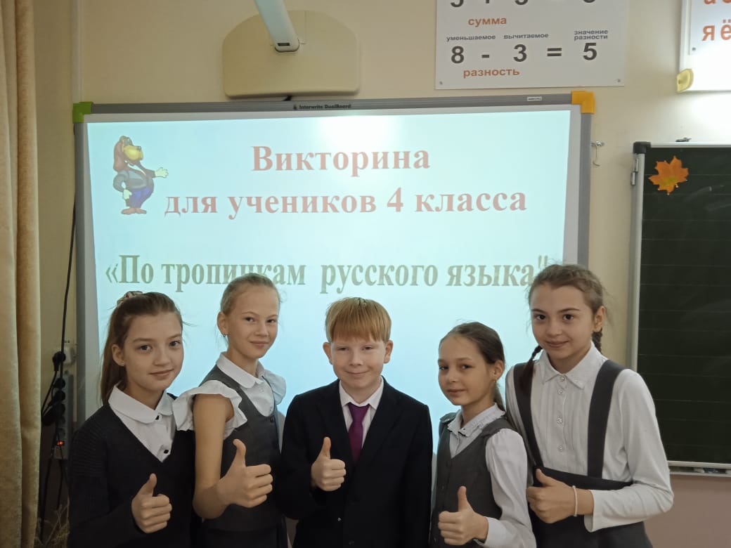 14 февраля среди команд 4-х классов прошла викторина "По тропинкам русского языка". Ребята дружно и весело прошли испытания, продемонстрировав хорошие знания правил русского языка, умение работать в командах. Они сумели разгадать ребусы, шарады, объяснить значения крылатых фраз, заглянули в глубины значений многозначных слов. Победила дружба и любовь к русскому языку!