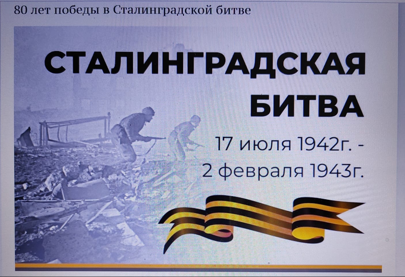80-летию Победы в Сталинградской битве, в 10 классе на уроке истории (учитель Горшенина Н.М.), была проведена Интеллектуальная игра «Сталинградская битва», где обучающиеся проявили свою эрудицию по направлениям: даты, события, личности, культура, военные операции битвы и т.д.