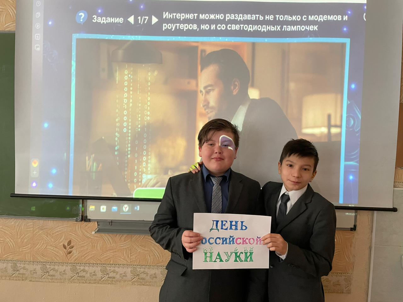 6 февраля в 5А классе прошел разговор о важном, посвященный Дню Российской науки. Цель занятия: способствовать формированию у обучающихся представлений о России, как стране с огромным научным потенциалом. Ребята просмотрели видеоролики и ответили на ряд вопросов интерактивных заданий. Самые точные ответы дал Нутфуллин Альфред.