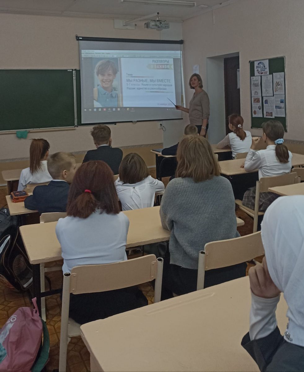14.11.2022 был проведён классный час на тему: «Мы разные, мы вместе» Поговорили о величестве нашей Страны, о её многонациональности, а так же, познакомились с десятью регионами нашей страны. Узнали о их особенностях, достопримечательностях и обычаях.