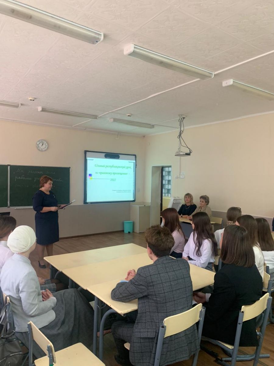 19 октября 2022 года в МБОУ "СОШ 7" для учащихся 11 классов был проведен Единый республиканский урок по правовому просвещению "Мы в ответе за свои поступки" . Ребята рассуждали о роли Конституции в жизни общества, решали правовые кейс-задачи и в конце урока сделали вывод о необходимости каждому человеку отвечать за свои поступки.