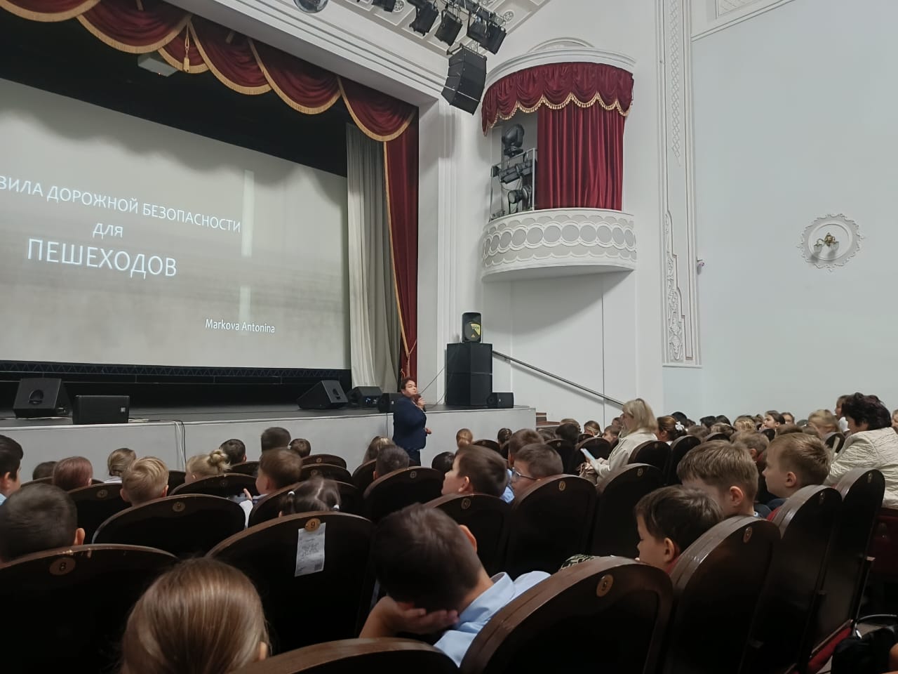 В рамках Республиканского месячника "Внимание, дети!" в большом зале Дворца культуры состоялась встреча с Рахмановой З.М.- сотрудником ГАИ г.Лениногорск, которая напомнила нашим детям о правилах и безопасном поведении на улице и дорогах. Мероприятие посетили учащиеся 5Г класса. Ребята посмотрели фильмы "Смотри по сторонам" и х/ф "Суворовец".