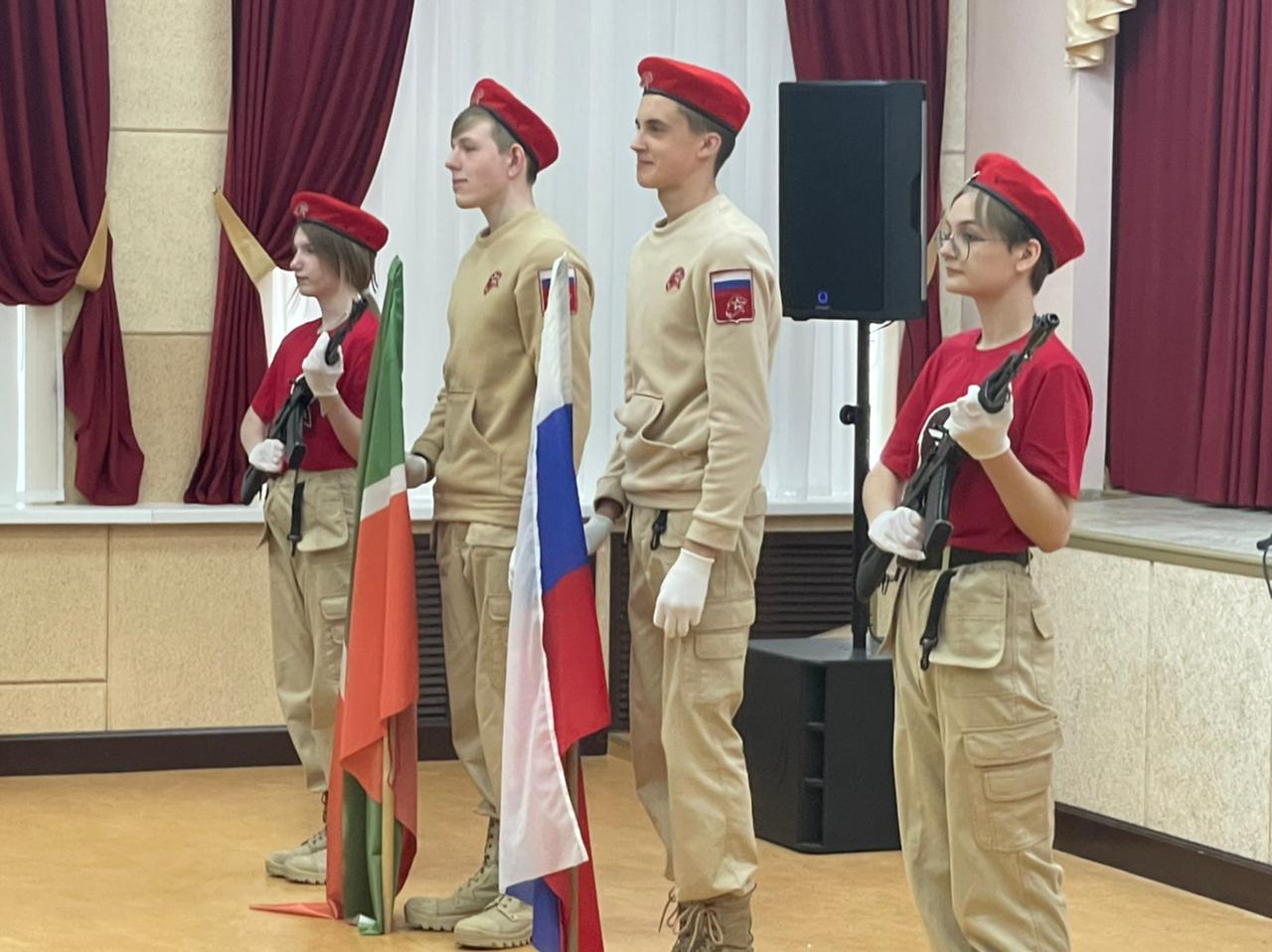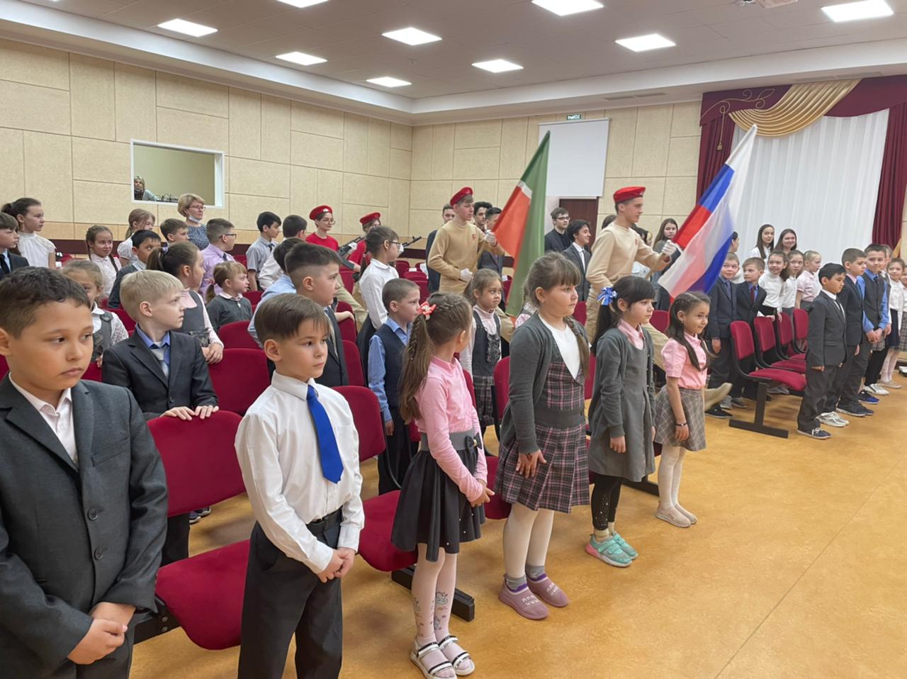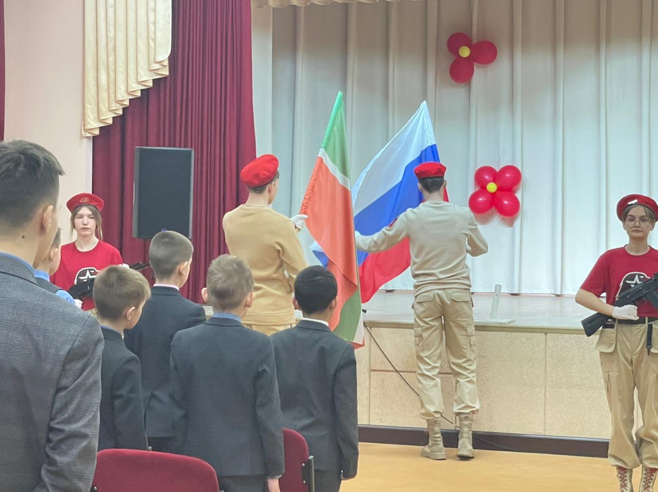 В татарстанских школах стартовал Единый день поднятия государственного флага России и Татарстана и исполнение гимна. В торжественной обстановке учащиеся отряда «Юнармия» внесли флаги в актовый зал и установили их, в мероприятии приняли участие учащиеся 1А, 4Б и 9А классов.