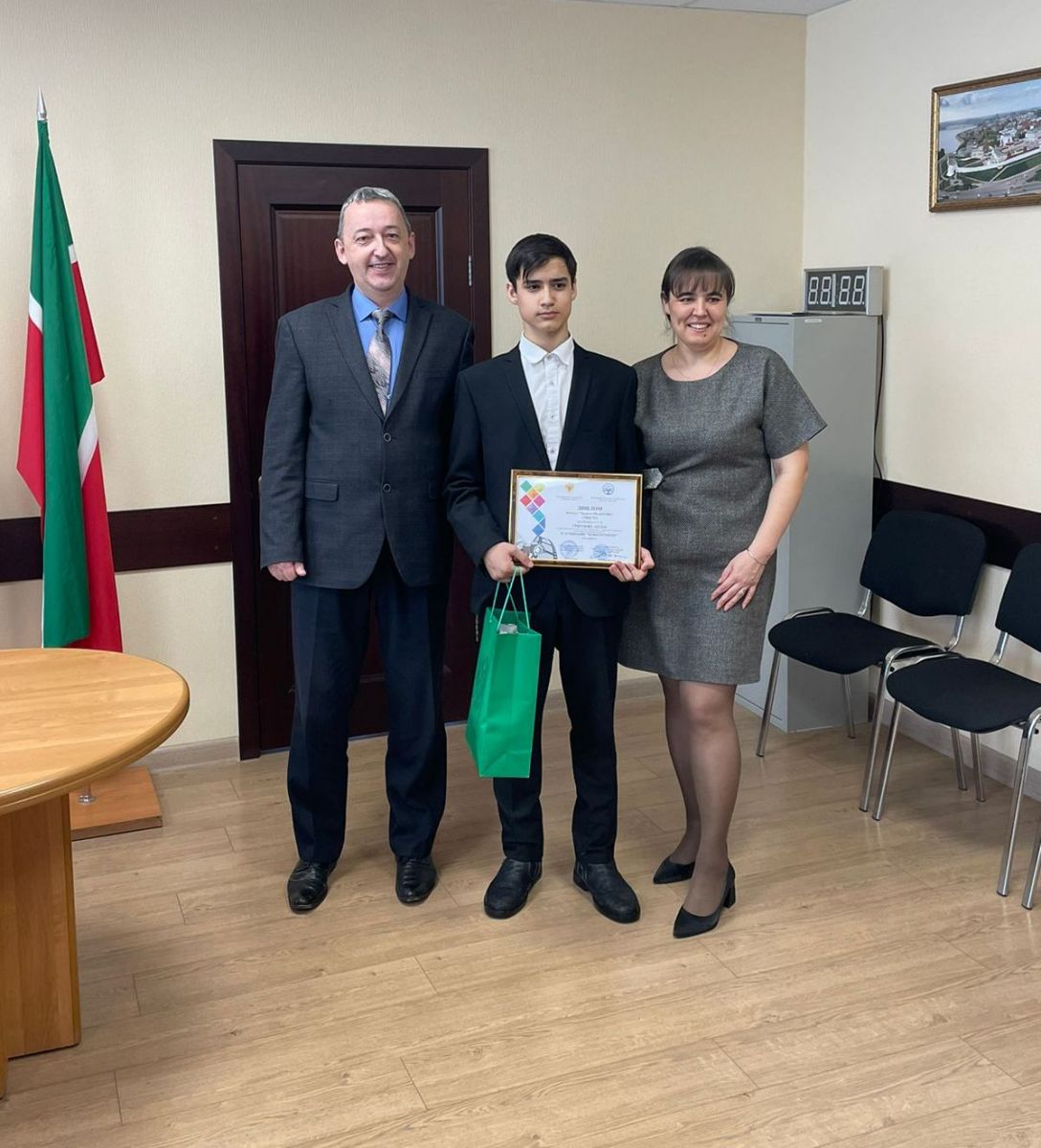 Грамоту и памятный подарок победителю вручил Председатель Лениногорского городского суда Р.М.Сахавов, а мировой судья судебного участка №1 А.Е.Борисова провела экскурсию по зданию дома правосудия с посещением музея суда.