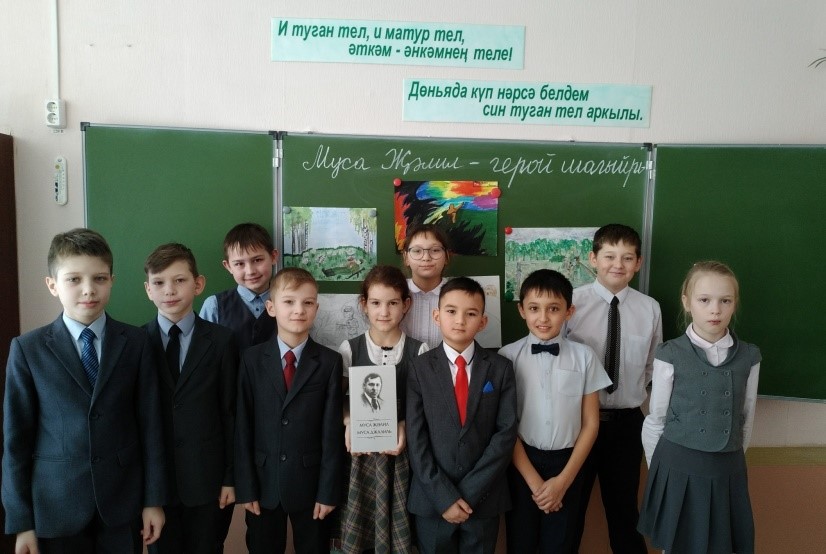 Герой-шагыйрь Муса Җәлилне искә алу атналыгы кысаларында, 4 Б сыйныф укучылары шагыйрьнең тормышын, әдәби эшчәнлеген, әсирлеккә эләгүе һәм аның исемен мәңгеләштерүче «Моабит дәфтәрләре» китабын искә төшерделәр. Шагыйрьнең поэзиясе генә түгел, тормышы һәм фаҗигале язмышы, батырлыгы да үсеп килүче буын өчен үрнәк.