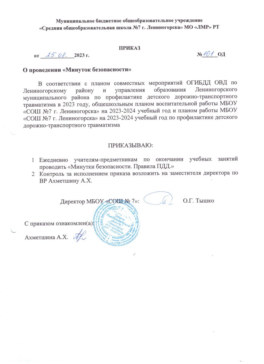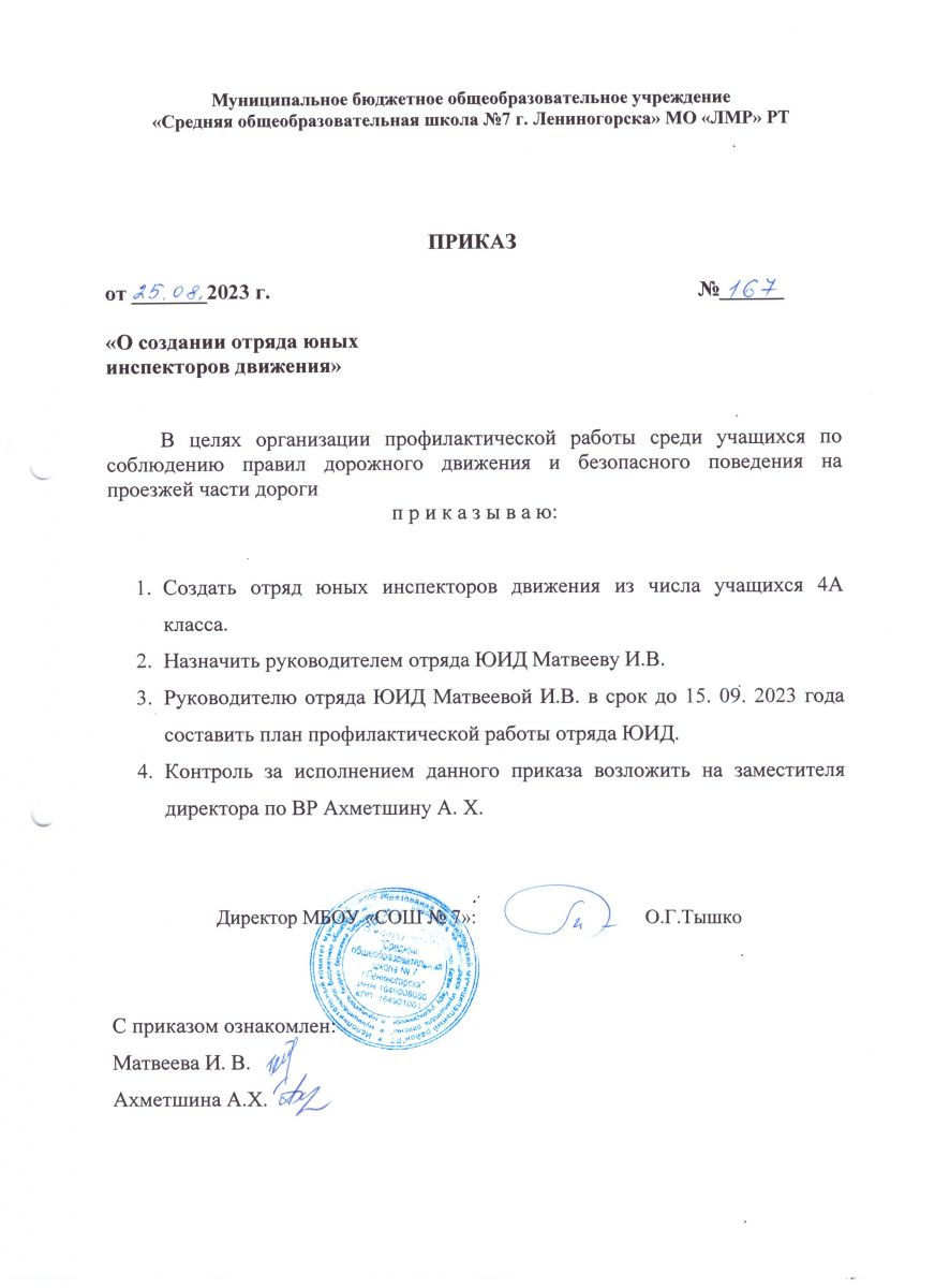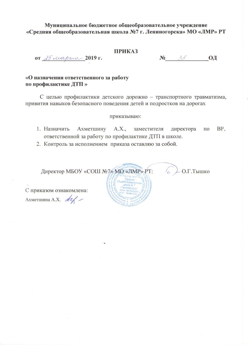 - "О назначении ответственною зa работу по профилактике ДТП"