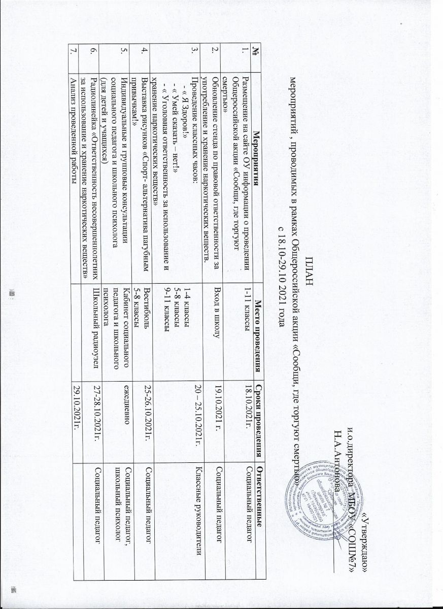 План мероприятий, проводимых в рамках Общероссийской акции «Сообщи, где торгуют смертью»