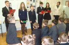 В актовом зазе школы прошел школьный конкурс инсценированной военно-патриотической песни "Вечной память живы". Этот конкурс стал уже традиционным и проводится ежегодно, в рамках гражданско-патриотического месячника с целью воспитания у учащихся чувства патриотизма. По итогам конкурса места распределились следующим образом: 1 место заняли учащиеся 1 В (И.Н.Мухоярова), 3 А (Р.З.Хамидуллина), 5 Б (Л.Г.Рамазанова); 2 место заняли 1 А (Л.В.Есипова), 3 Б (Т.В.Эскина), 4 А (А.Р.Ижбулатова), 4Б (Е.С.Алтапова); 3 место - 1 Б (Л.Р.Юнусова), 2 Б (И.А.Прибышеня), 5 А (Р.М.Ахтямова).