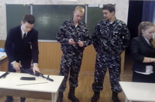 Встреча учащихся 10 "А" класса с командой "Форпост" 12.12.2014 12 декабря 2014 года на классный час были приглашены члены городской команды "Форпост" во главе с директором Романом Александровичем Мишариным. В числе команды оказался и выпускник школы № 8 Бектяшев Леонид. Гости рассказали учащимся о назначении данной организации, их миссии, показали полную и неполную разборку автомата, дали ребятам возможность самим поучаствовать в мероприятиях.