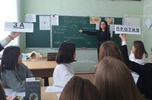 Известно, что истина рождается в споре. Ученицы 11класса во время урока литературы активно рассуждали, Раскольников - убийца или жертва, какое наказание сильнее: суд или угрызения совести? В группах обсуждали сложный философский вопрос: жертвенность - благо или зло?