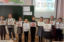 Туган телләр елы кысаларында 3а сыйныфында «Татар милли орнаменты» дигән темага рәсем дәресе үтте. Балалар дәрестә татар милли орнаменты тарихыннан бик күп кызыклы нәрсәләр белделәр, стена бизәге элементларын өйрәнделәр, татар милли киемнәрен карадылар. Зур кызыксыну белән тәлинкәләр ясадылар һәм аларны татар орнаменты элементлары белән бизәделәр. Эшләр бик матур килеп чыкты. Укытучы: Мухоярова И.Н.