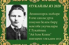 Һәр ел саен апрель аенда татар халкының үлмәс шагыйре Габдулла Тукайны искә алабыз. Дистанцион уку оештырылуга карамастан, аңа багышлап төрле чаралар үткәрелә. Быел да бу уңайдан татар шигъриятен үстерүгә тиңдәшсез зур өлеш керткән сөекле шагыйребез Габдулла Тукайның тууына 134 ел тулу уңаеннан, укучылар #ТУКАЙЛЫЯЗ2020 исемле район күләмендә үткәрелгән акциядә видеошигырьләре белән катнашты.