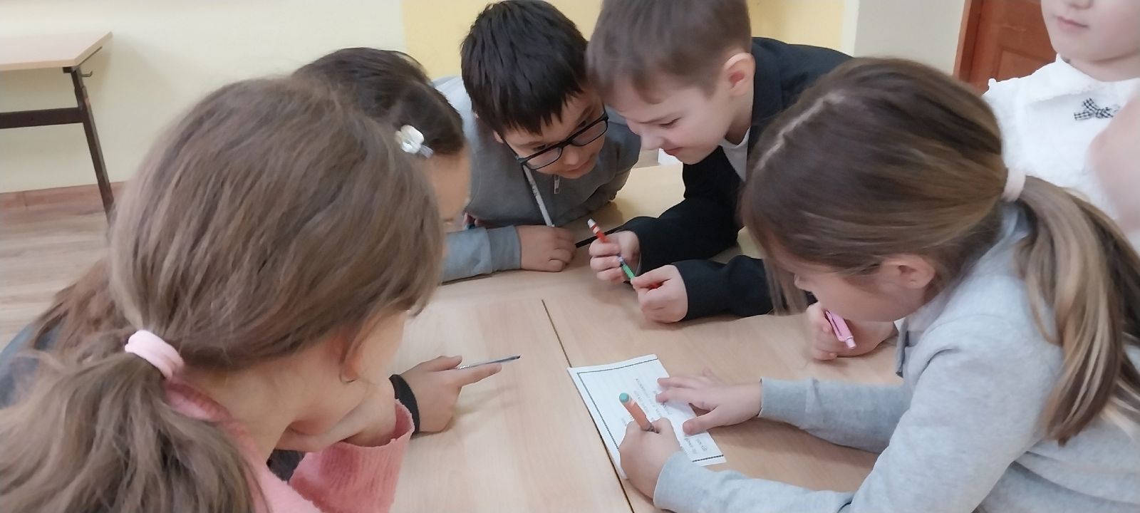 Перед игрой учащиеся разделились на две команды: :Геометрики " и "Один плюс один". Юных математиков ждали "Ребусы", "Задачи-шутки:, "Знатоки пословиц", "Логические задачи ".