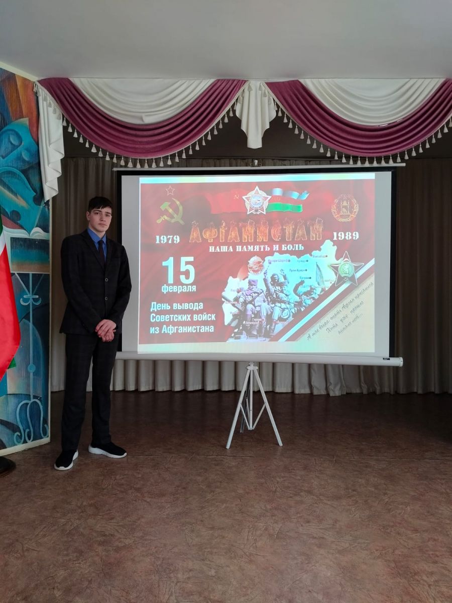 Ежегодно 15 февраля отмечается день вывода советских войск из Афганистана. Этот день является памятным как для России, так и для всего мирового сообщества. Сегодня, 15 февраля 2025 года для учащихся 9В класса в актовом зале школы состоялся урок мужества под названием "Афганистан к нам тянется сквозь годы". Ребята узнали о боевых операциях, солдатской верности воинской присяге, о чести и мужестве бойцов.