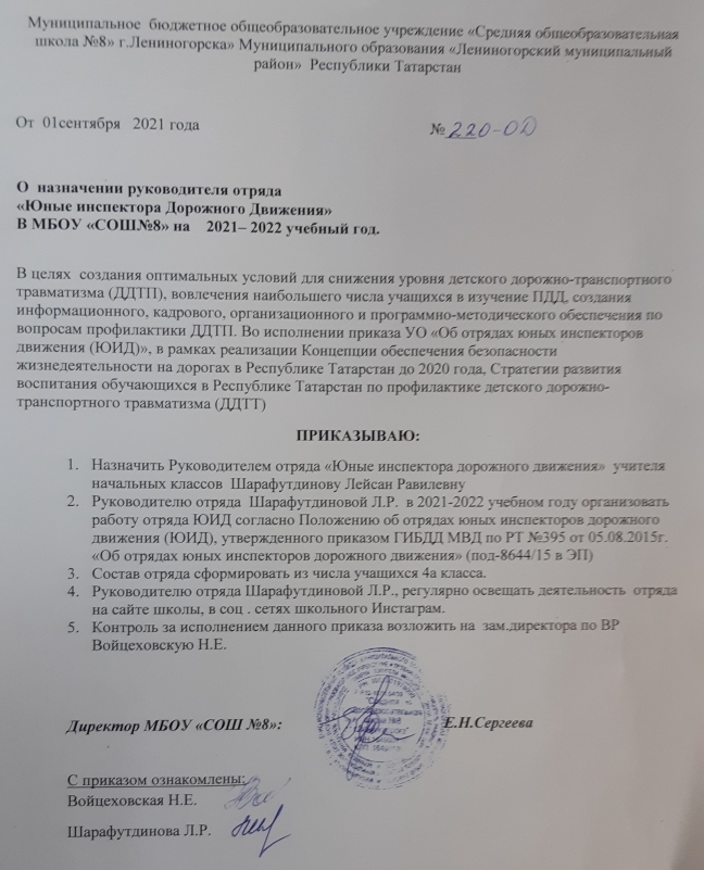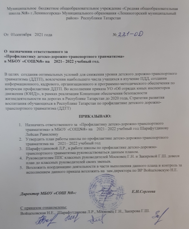 Приказ на ответственного за профилактику ДДТТ на 2020- 2021 год