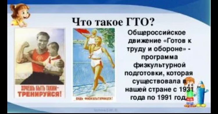 «Готов к труду и обороне» (ГТО) — полноценная программная и нормативная основа физического воспитания населения страны, нацеленная на развитие массового спорта и оздоровление нации.