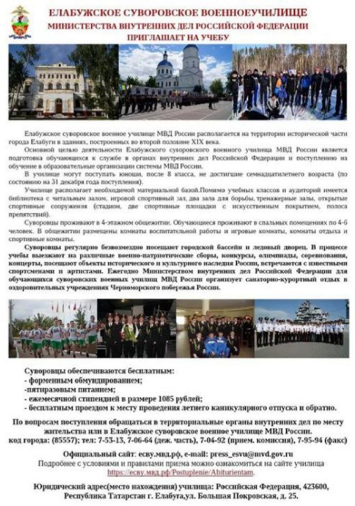 Информация для желающих продолжить обучение в военных учебных заведениях страны