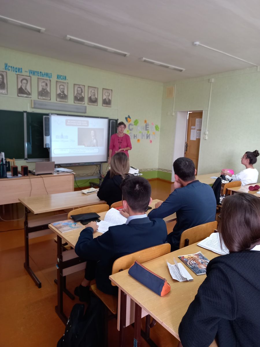 В 10 б классе учителем истории и обществознания Гиматдиновой Р.Ф. проведен Всероссийский Петровский урок. Цели данного урока: привлечение внимание к реформам Петра1, расширение знаний о вкладе его реформ в развитие государства, промышленности, науки, формирование интереса к личности и деятельности Петра1, формирование чувства уважения к историческому прошлому своей Родины, развитие познавательной активности учащихся.