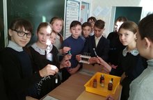 В рамках работы муниципальной акции "Неделя химии", посвященной 150-летию открытия Периодической системы Д.И.Менделеева, для учащихся 6в класса была проведена экскурсия по кабинету химии. Ученики познакомились с химической посудой, с занимательными опытами.