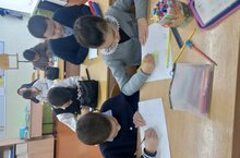 В рамках реализации программы внеурочной деятельности «Орлята России» классный руководитель 1Б класса Саубанова Р.Г провела занятие «От слова к делу». Юные орлята России приступили к занятиям трека «Орлёнок - Доброволец». Логотипом этого трека является приподнятая рука с раскрытой ладонью и сердцем. Ценности, значимые качества трека: милосердие, доброта, забота. Первоклассники познакомились с понятиями «Волонтёр», «Доброволец», «Волонтёрское движение». Был организован просмотр и обсуждение мультипликационного фильма «Рука помощи» и презентации «Как волонтёры помогают». Итогом занятия стало изготовление символа трека «Круг Добра». Детские ладони объединились в единый круг, ведь открытая ладонь каждого ребенка - это рука помощи, готовая поддержать и совершить доброе дело