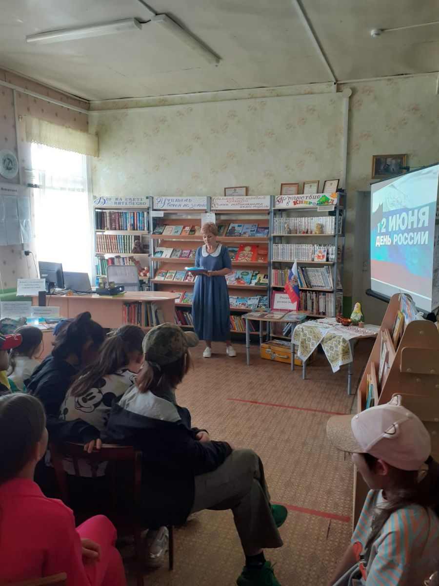 Во время подготовки ко Дню России в нашем пришкольном лагере проводились различные мероприятия, направленные на воспитание у наших воспитанников нравственно – патриотических чувств любви к своей Родине – России. Огромную помощь в организации мероприятий оказала работник сельской библиотеки Загрутдинова С.В.