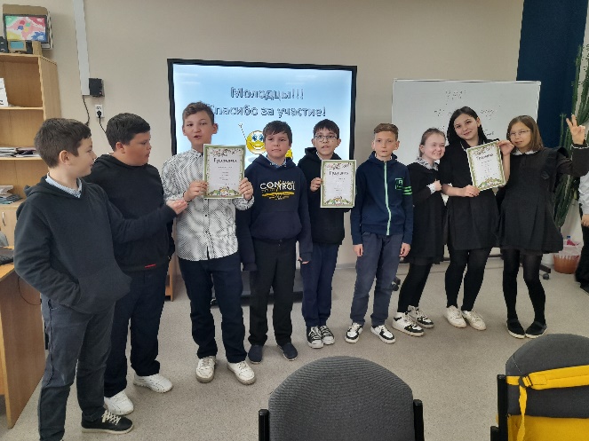 15 мая 2023 года на уроке математики в 5 «Б» классе прошла математическая игра «Своя игра». Ребята разделились на три команды: «Winx», «Мартышки» и «War face». На протяжении всей игры чувствовался азарт и накал страстей. В итоге первое место заняла команда «Мартышек» с отрывом в 4 балла! Второе место заняла команда «War face», ребята до последнего не уступала победителям. Только последние вопросы отделили их от заветного первого места.