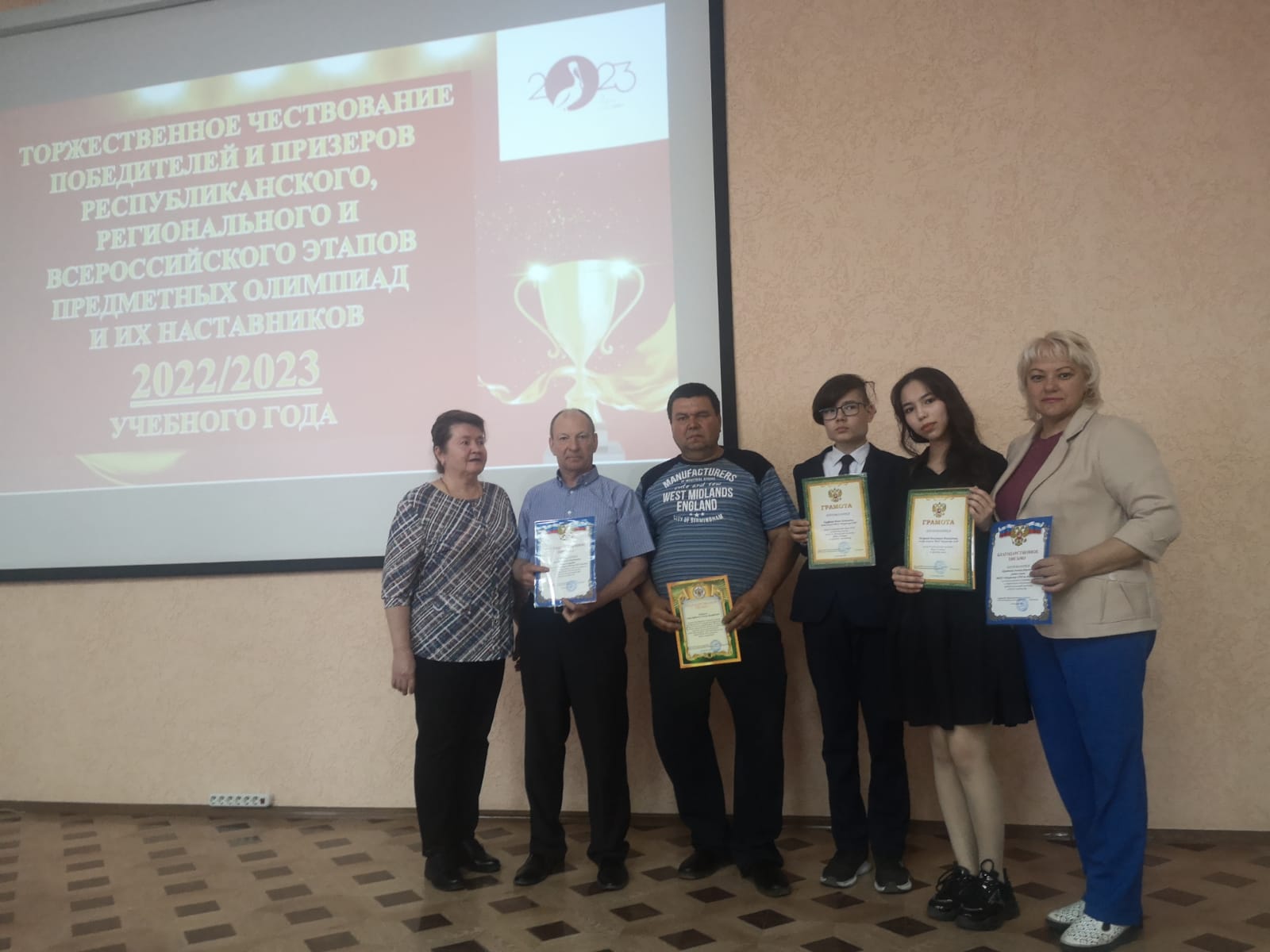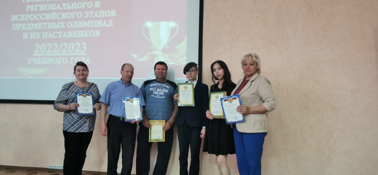 В актовом зале Управления образования прошла церемония чествования победителей и призеров Всероссийской и Республиканской (Путь к Олимпу) предметных олимпиад, их педагогов - наставников. Победители и призеры: Джураева Масума, 10а класс (призер по химии), Гирфанов Рамис, 9в класс (математика и геология). Педагоги: Нуртдинова Э. Ф. - учитель химии, Зиатдинова Г. С. - учитель математики, Гильманов Н. А. - учитель географии.