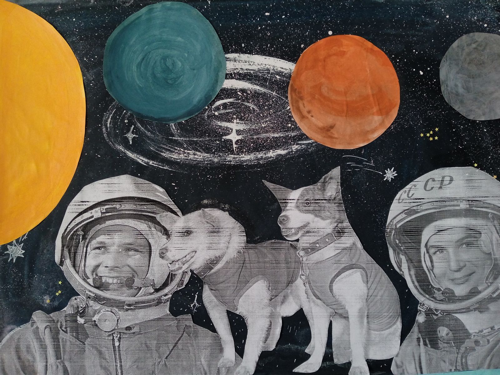По окончании занятия учащиеся нарисовали рисунки. Семиклассники показали, что хорошо знают историю космонавтики, космонавтов, и учёных, работавших в нашей стране над созданием ракет и запуском космических кораблей.