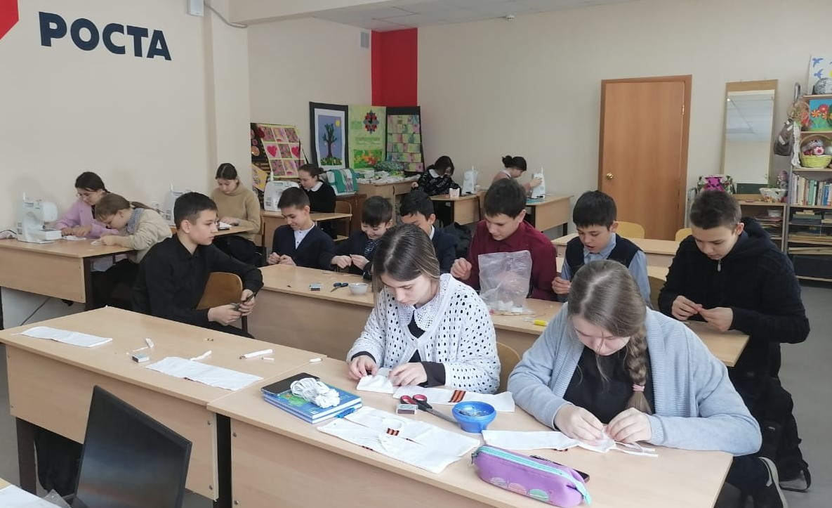Участники кружка «Проектирование в социальной среде» и “Технология и дизайн” в рамках поддержки воинов - участников СВО продолжают работу по пошиву белых повязкок солдатам российской армии. #РЦВ#РДШ#РДШРТ#МБОУШугуровскаясошимениВПЧкаловаДООМечтатели#Zанаших#Zапобеду