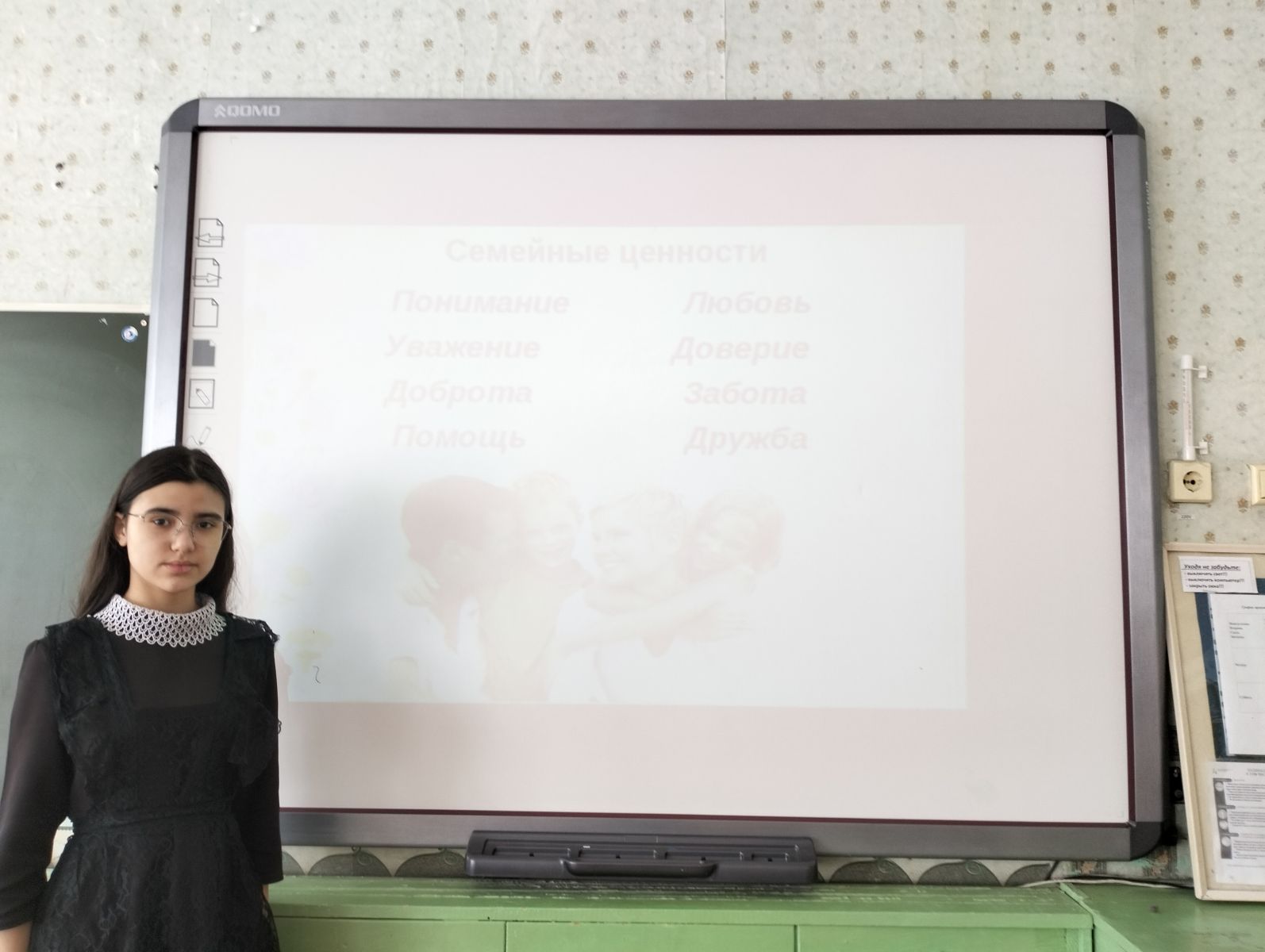 Цель данного занятия: формирование у учащихся понимания традиционных семейных ценностей, преемственность поколений, взаимоуважения в семье.Учащиеся 8 А класса ознакомились с предложенным материалом сайта, просмотрели и проанализировали видеоролики, интерактивный и презентационный материал. Также ребята сами подготовились и рассказали о своих семейных традициях.