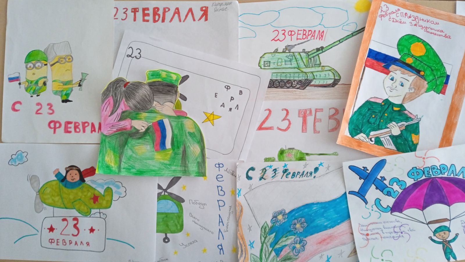 Учащиеся МБОУ “Шугуровская СОШ имени В.П. Чкалова” под руководством Бадыкшановой А.И. рисуют поздравительные рисунки солдатам российской армии по теме "День защитников Отечества" .