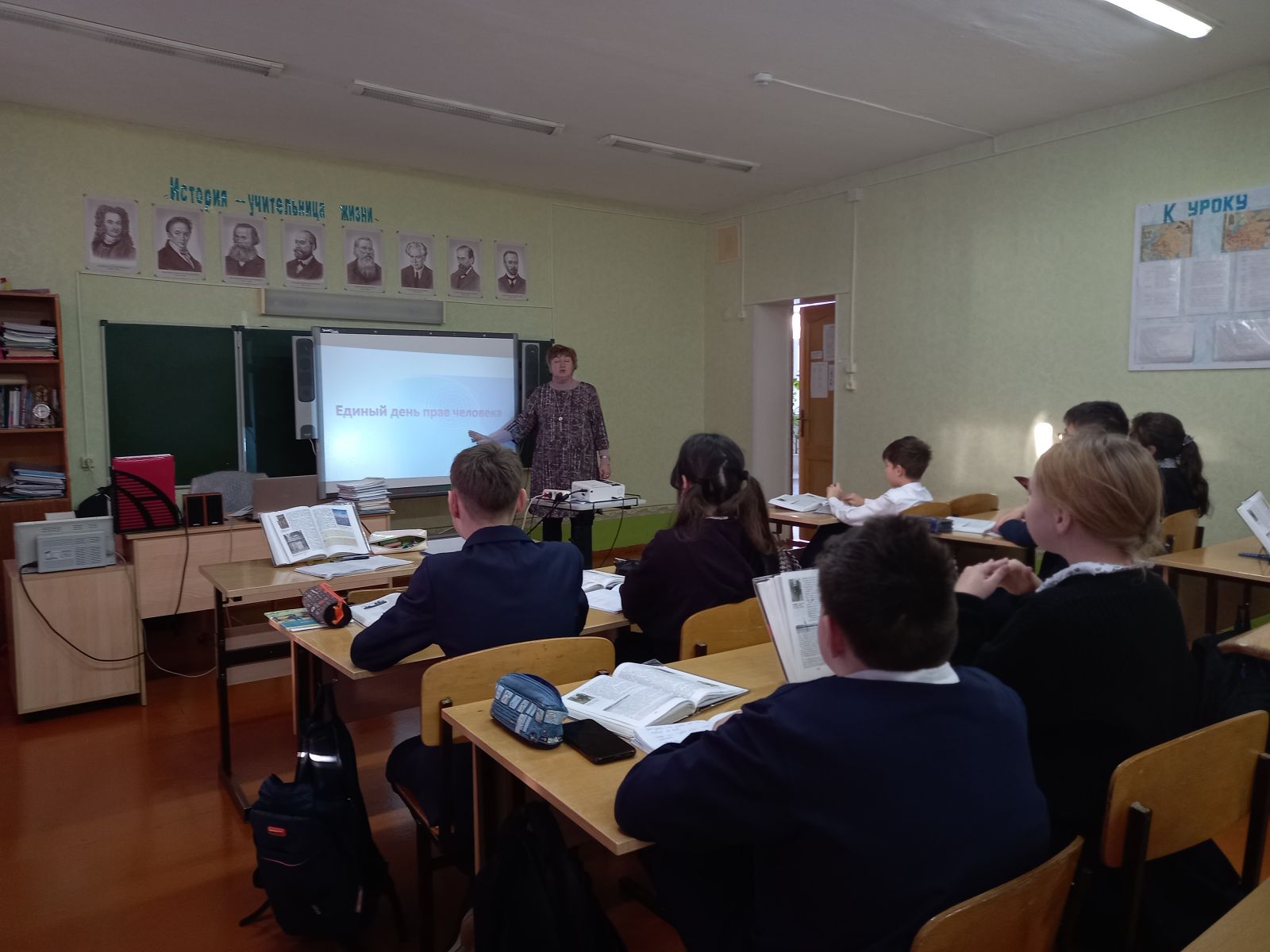 В 6х классах учителем истории и обществознания проведены уроки, посвященные принятию Декларации прав человека. Основные цели мероприятия: рассмотрение основных поправок Конституции Российской Федерации, Всеобщей декларации прав человека и других международных и национальных нормативных актов в сфере прав человека; содействие воспитанию уважительного отношения к правам и свободам человека, содействие формированию у учащихся правовых ценностей. Учащиеся ознакомились с поправками в Конституции, рассказывали о реализации прав человека в современном мире, решали правовые задачи в игровой форме.