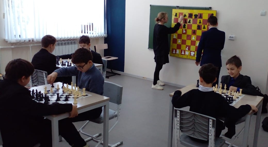 Участники шахматного кружка с большим энтузиазмом отрабатывают приемы в игре, тактические комбинации и приемы «двойной шах», «открытый шах».