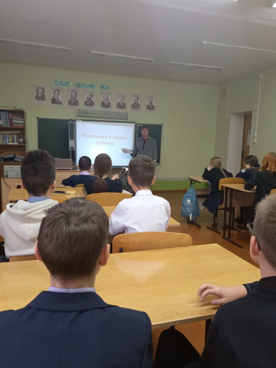 В рамках Декады правовых знаний «Правовые знания детям!» в 5-х классах (учитель Кириллова Л. А.) прошел урок «Конвенция о правах ребенка» Цель урока: овладение учащимися знаниями в области прав человека, формирование понимания и уважения культурных и национальных традиций, взглядов и мнений, активной гражданской позиции, воспитание молодежи в духе гуманизма, свободы и демократии.
