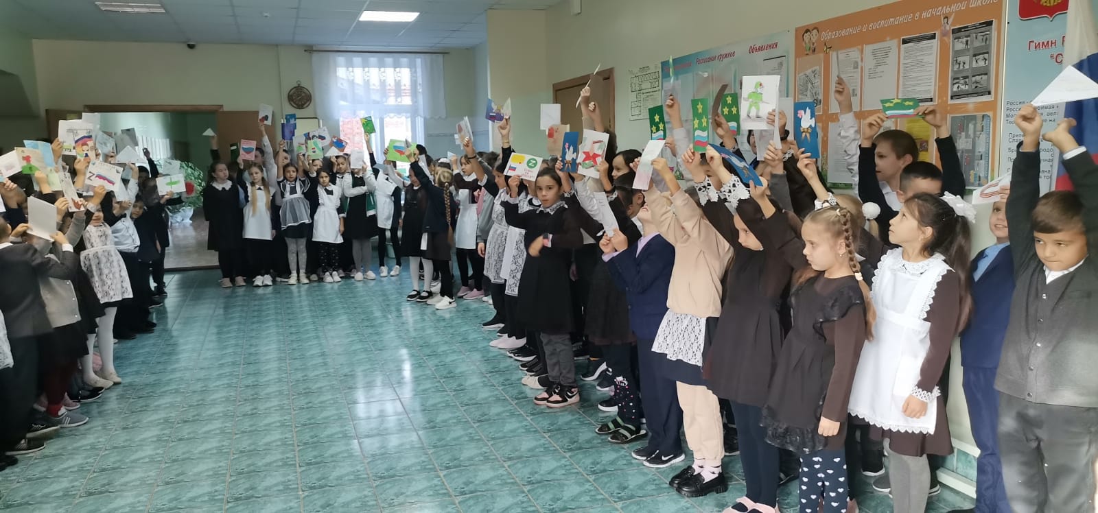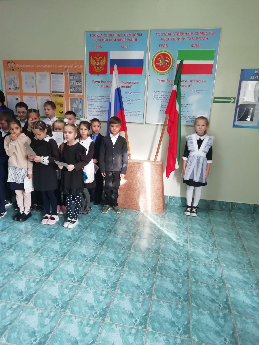 03.10.2022 в начальной школе прошла торжественная линейка. Почётное право внести флаги РФ и РТ предоставилось учащимся 3Б класса Фахрисламову Кариму и Фатхутдиновой Амиле, отличникам учёбы. После линейки во всех начальных классах в рамках занятий «Разговоры о важном» было проведено внеклассное мероприятие «День Учителя».