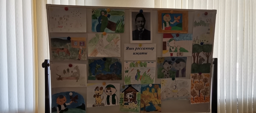Китап күргәзмәсе.«Әткәм — әнкәмнең теле». “Яшь рәссамнар иҗаты” исемле Г.Тукайның әсәрләренә рәсемнәр һәм иллюстрацияләр күргәзмәсе.