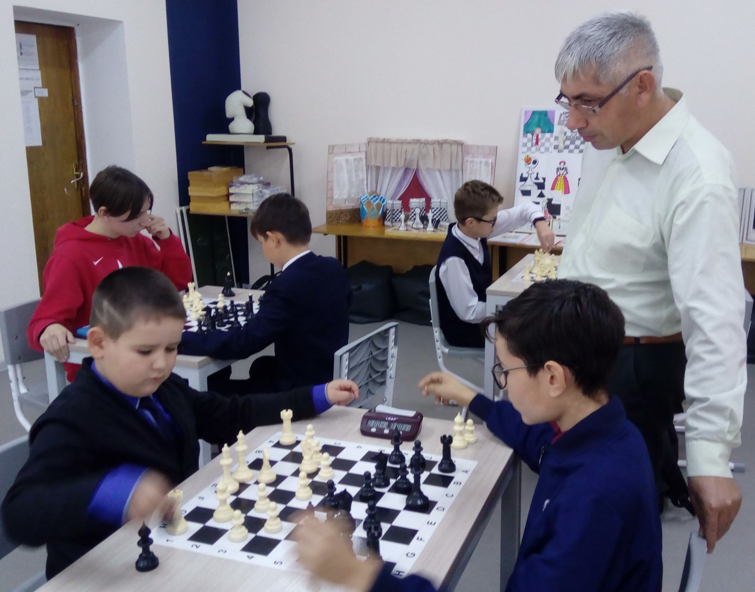 Юные шахматисты с большим энтузиазмом играют в шахматы.