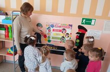 Тэрбияче Лейсан Камиловна белән бергә балалар юлда үз-үзеңне куркынычсыз тотуның төп кагыйдәләрен һәм юл билгеләрен искә төшерделәр, юлны ничек кичәргә кирәклеге һәм җәяүлеләр кичүендә җәяүле үзен ничек тотарга тиешлеге турында сөйләделәр.
