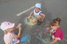 В честь праздника Дня России в детском саду прошли различные мероприятия. Воспитатели совместно с детьми присоединился к различным акциям. Также дети с удовольствием приняли участие в акции «Россия рисует», на территории сада дети нарисовали символ нашей страны – флаг.
