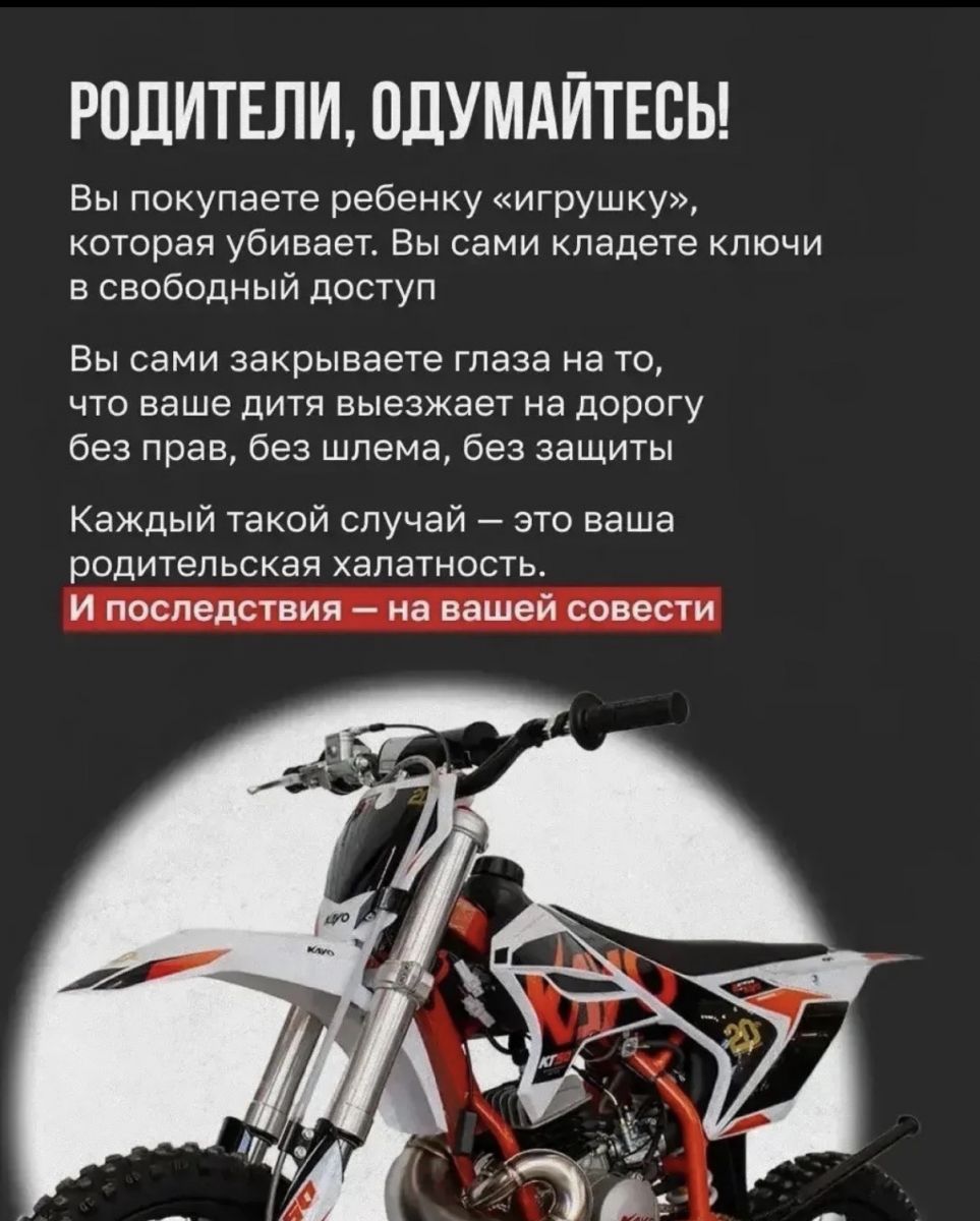В связи с увеличением числа ДТП с участием питбайков, особенно среди несовершеннолетних, в России водятся новые поправки в правила дорожного движения. По новым правилам родителям предусмотрены штрафы до 30 000 рублей, а также уголовная ответственность.