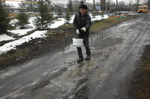 Для обеспечения безопасности и предотвращения травматизма дорогу на школьной территории посыпали песком с солью.
